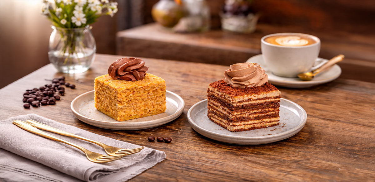 Când vine vorba de deserturi stratificate, elegante și fine, Prajitura Medovik și Prajitura Spartak se remarcă prin echilibrul perfect dintre foi subțiri și creme delicate. Ambele oferă o experiență dulce memorabilă, fiecare cu personalitatea ei distinctă.